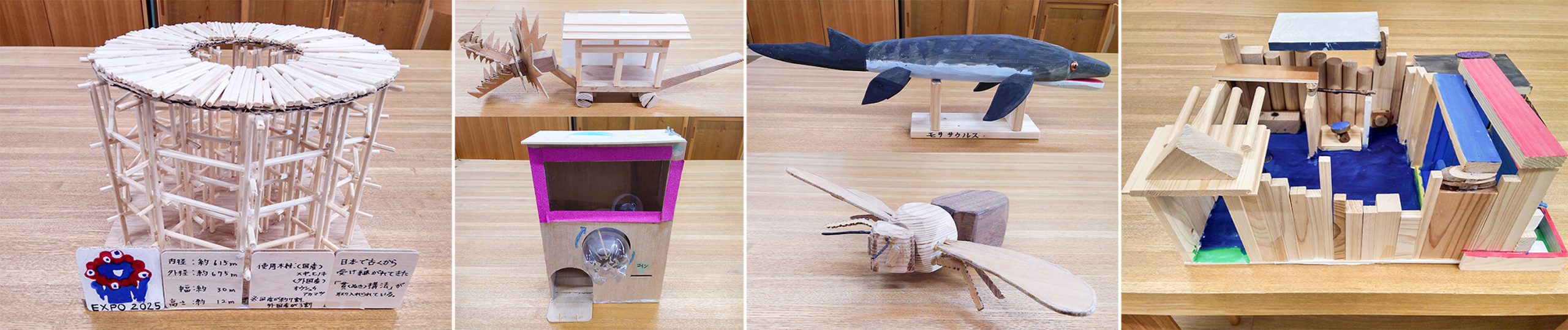 当組合では、地元小学校の夏休みの工作宿題のひとつに、子どもたちの創造力を高め、「親と子のふれあいの場」を提供する目的として毎年「ちびっこ木工コンテスト」を開催しています。